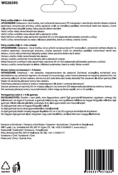 Párty svíčka číslo 3 + 4ks svíček - mix variant či barev