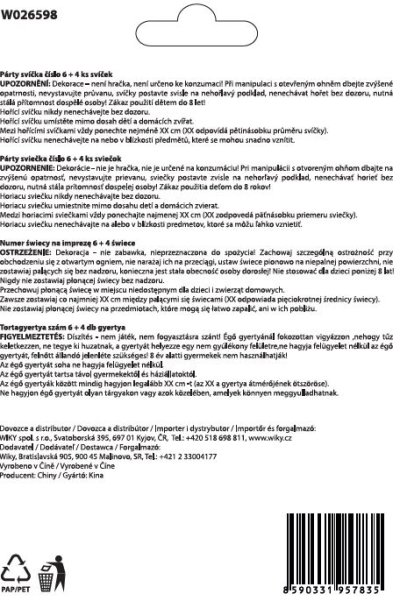 Párty svíčka číslo 6 + 4ks svíček. 2 barevné varianty - modrá, růžová.