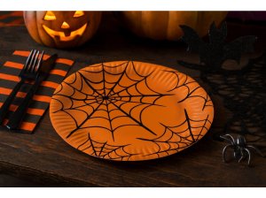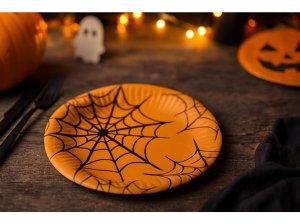 Barevné papírové talířky s hravým halloweenským motivem duchů, dýní a netopýrů dodají vaší oslavě tu správnou strašidelnou atmosféru. Ideální na dětské party, školní akce nebo domácí Halloween. Balení obsahuje 8 ks talířků o průměru 23 cm. Jednorázové a praktické.