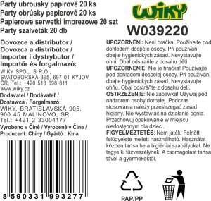 Papírové párty ubrousky DINO o velikosti 33x33 cm. Balení obsahuje 20 ks.