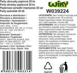 Papírové párty ubrousky HRA o velikosti 33x33 cm. Balení obsahuje 20 ks.