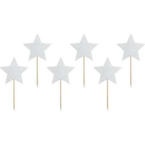 PartyDeco zapichovací dekorace na muffiny Stříbrné hvězdičky KPM19-018B dortis