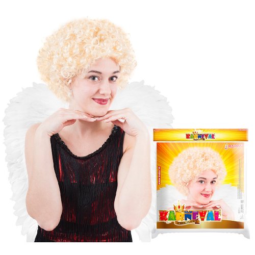 Půvabná karnevalová paruka krátká. Skvělý doplněk karnevalového kostýmu anděl. Staň se hvězdou karnevalového večírku!