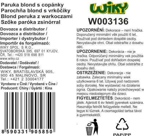 Blonďatá paruka se zapletenými copánky bude skvělým doplňkem na tématický večírek nebo karneval! Rozměry balení 22 x 30 x 3 cm. Vhodné pro děti od 6 let.