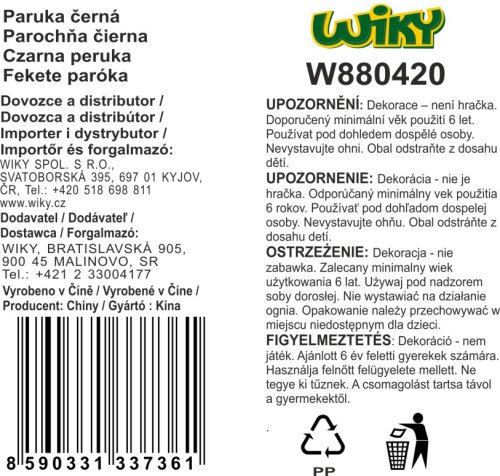 Originální černá paruka s kudrlinami.