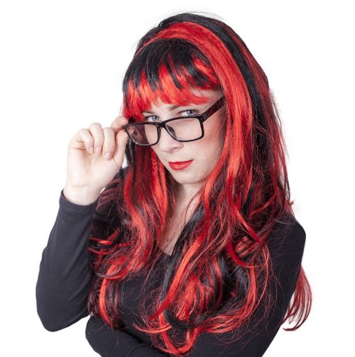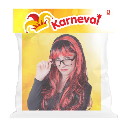 Tato exkluzivní paruka v černo-červené barvě je ideálním doplňkem na párty nebo karneval! Paruku lze také použít ke kostýmu čertice nebo k oslavě Halloweenu.