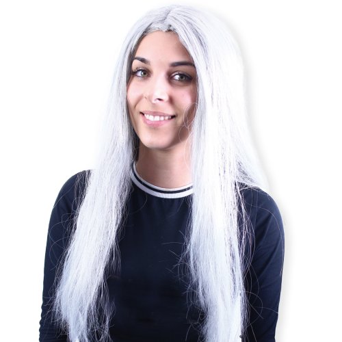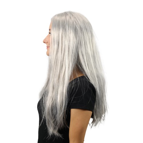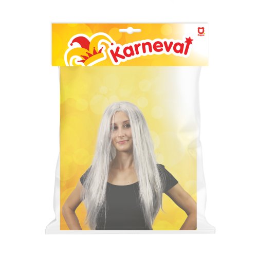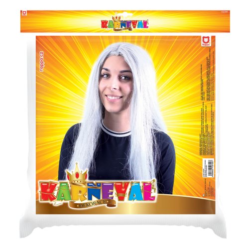 Karnevalová paruka v motivu čarodějnice. Paruka má dlouhé šedé vlasy. Ideální doplněk ke tvému kostýmu! Vhodné i k oslavě Halloweenu.