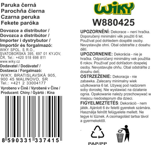 Originální černá paruka bude skvělým doplňkem na tématický večírek nebo karneval!