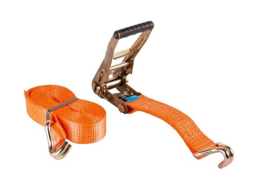 Textilní pás s ráčnovým zámkem pro napínání a bezpečnost nákladů. Homologace TÜV/GS.