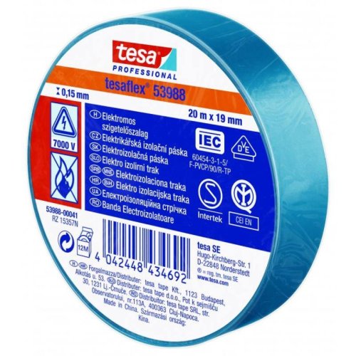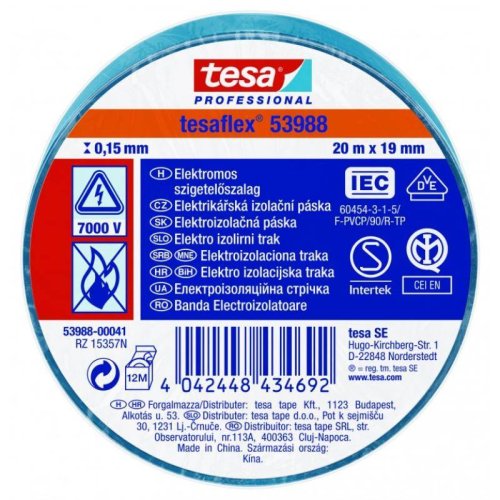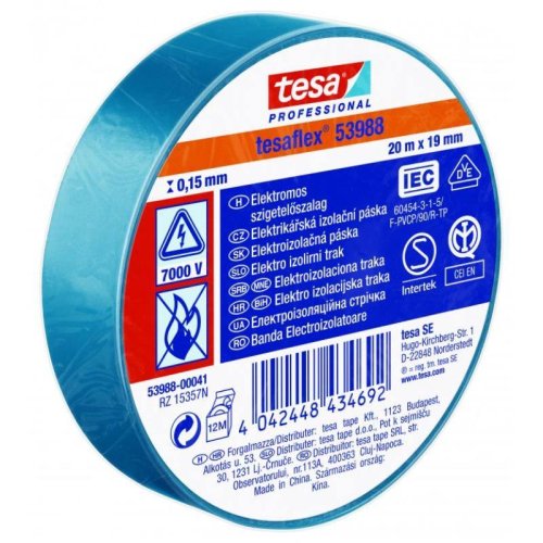Páska elektroizolační PVC 53947, IEC, 20 m x 19 mm, modrá, TESA
