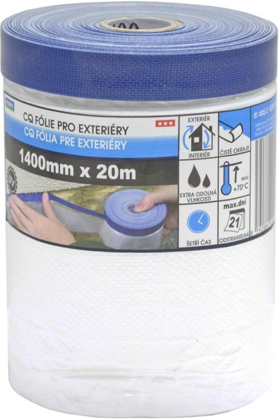 Páska krycí exteriérová 140 cm x 20 m, samolepicí, se zakrývací folií.