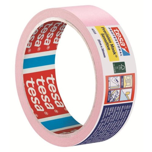 Páska maskovací, odstranitelná do 14 dnů, 25 m x 30 mm, růžová, 4333 Precision Mask Sensitive, TESA
