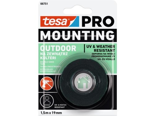 Páska tesa PRO Mounting Outdoor urychluje a usnadňuje řemeslníkům práci ve venkovním prostředí. Díky spolehlivé a účinné lepicí síle výborně drží na náročném povrchu (dlaždice, cihly, kov, tvrdé plasty). Zákazníkům tak můžete nabídnout trvalé a bezpečné upevnění důležitých objektů (dopisní schránky, čísla na domech) pomocí pásky odolné proti UV záření, vlhkosti i teplotním extrémům.
