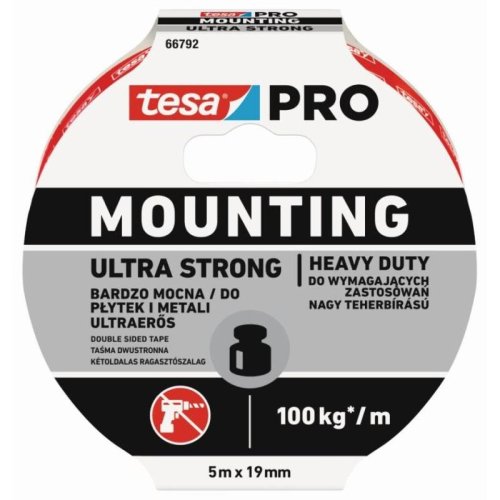 páska oboustranná montážní 66792 velice silná montážní páska se hodí k bezpečnému upevnění objektů nastálo model tesa PRO Mounting Ultra Strong udrží objekty až 10 kg na jeden kus pásky, a dokonce vyrovná …