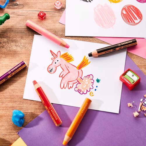 • kreslí na různé povrchy: dřevo, sklo, kůže, plast, kovy, * vynikajicí akvarelové schopnosti, * vysoká krycí schopnost, * intenzivní barvy, které vyniknou i na tmavých podkladech, * lze snadno smýt vodou či vodou se saponátem, * extra silné tělo, * vyrobena 100% ze dřeva certifikovaného PEFC, * netoxická, vhodná pro děti od 3 let, * NELÁMAVÁ TUHA XXL O PRŮMĚRU 10 MM, * DÉLKA PASTELKY 11 CM, [pastelka 10 mm], Tip: K pastelkám užijete i ořezávátko Woody.