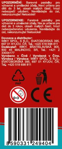 Seznam varování o bezpečnosti pastelek vychází z požadavků nařízení (EU) 2023/988 o obecné bezpečnosti výrobků (GPSR): * Věnujte pozornost chemickému složení pastelek, vybírejte pastelky netoxické, zejména pro malé děti. * Zkontrolujte, zda pastelky mají příslušné atesty a certifikáty bezpečnosti, např. značka CE. * Ujistěte se, že pastelky jsou vhodné pro věk dítěte podle doporučení výrobce. * Vyhýbejte se pastelkám s malými prvky, které mohou být spolknuty dítětem a hrozí nebezpečí udušení. * Pastelky by měly být řádně skladovány, aby se zabránilo jejich poškození nebo znečištění. * Pravidelně kontrolujte stav pastelek, abyste se ujistili, že nejsou zlomené nebo poškozené, což by mohlo představovat nebezpečí pro dítě. * Při kreslení pastelkami dohlížejte na dítě, abyste zabránili jejich vkládání do úst nebo očí. * Po použití si umyjte ruce dítěte, abyste odstranili případné stopy pigmentů z pastelek. * Věnujte pozornost typu balení, aby bylo bezpečné a obtížně otevíratelné pro malé děti. * Informujte dítě o zásadách bezpečného používání pastelek, např. Neházet je, ne kousat.