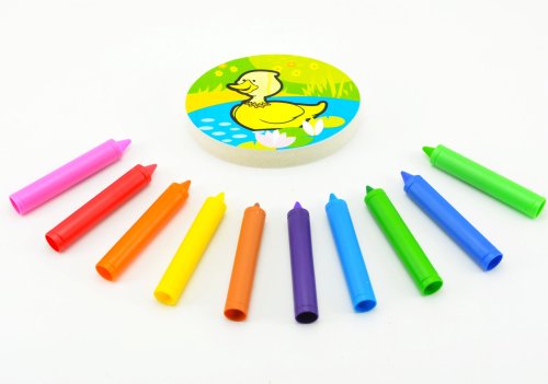 S pastelkami do vany Moje první zvířátka se vaše koupelna promění každý den v jiný svět. Malují na vanu i obklady a děti si s nimi užijí moře legrace. Mohou vytvořit hotová umělecká díla a maminky se nemusí obávat, protože tyto pastelky jdou lehce smýt. Jsou zcela bezpečné, netoxické a hypoalergenní. Sada obsahuje 10 pastelek a houbičku s motivem kačenky.