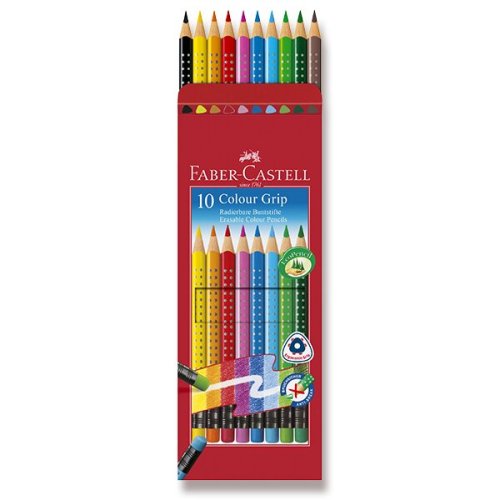 barevná stěrací pryž odpovídající barvě pastelky, * patentovaná GRIP zóna s malými masážními a protiskluzovými body, * intenzivní, syté barvy, vodou zcela rozmalovatelné, * speciální okénko na jméno, * vypratelné z většiny běžných textilií, * speciální technologie lepení (SV) zamezuje lámání tuhy, * povrchové laky na vodní bázi, * kvalitní dřevo - záruka snadného ořezávání pomocí standardních ořezávátek