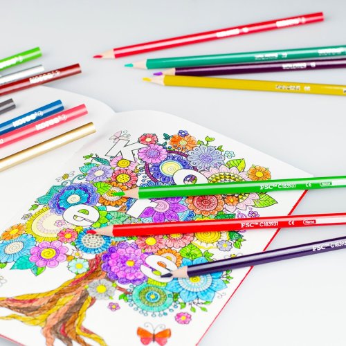 ideální pro vybarvování antistresových omalovánek a mandal jemné a plynulé vedení pastelky – intenzivní a jasné barvy zářivé barvy díky vysokému obsahu pigmentu z vysoce kvalitního lipového dřeva pro snadné ořezávání extra měkká tuha trojhranný ergonomický tvar rámeček pro vepsání jména