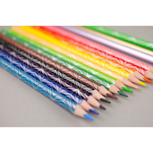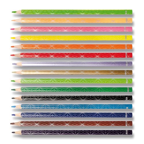 stříbrné designové vzorování těla pastelky, * jemné a plynulé vedení pastelky – intenzivní a jasné barvy, * zářivé barvy díky vysokému obsahu pigmentu, * z vysoce kvalitního lipového dřeva pro snadné ořezávání, * nelámavá odolná a zároveň měkká tuha, * trojhranný ergonomický tvar, * vhodné pro kresbu na světlý i tmavý papír, Obsahuje:, * 12 ks standardních barev, * 2 ks metalických barev, * 1 ks neonové barvy