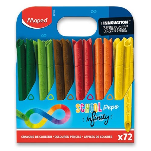 Školní sada 72 ks bezdřevých pastelek Maped Color'Peps Infinity s originálním patentovaným designem, který umožňuje kreslit oběma stranami.