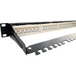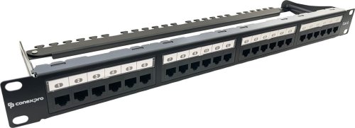 UTP patch panel bez stínění určený pro 19" datové rozvaděče s 24 porty kategorie CAT6 kombinuje spolehlivost a jednoduchou instalaci. S duálními svorkovnicemi typu 110/Krone 8p8c a kovovým provedením nabízí jednoduchou instalaci a stabilní připojení bez elektromagnetických rušení. Černá barva a výška 1U zajišťují kompaktní a estetický design. Odnímatelná vyvazovací lišta na zadní straně usnadňuje instalaci a vedení kabelů. Panel má celkovou hloubku 130 mm s lištou, 29 mm bez ní a v balení nechybí ani racková sada pro přichycení do datového rozvaděče