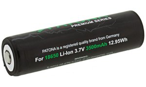 Baterie PATONA 18650 s kapacitou 3500 mAh, výdrží až 300 nabíjecích cyklů a vyvýšeným kladným pólem.