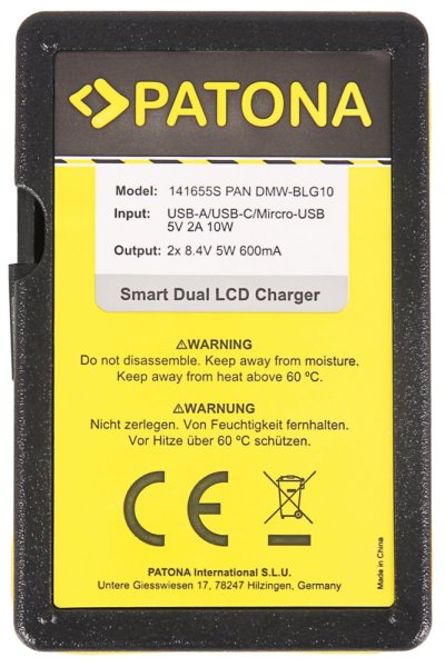 S nabíječkou Patona DUAL lze nabíjet současně 2 baterie najednou, bez ohledu na to, zda mají obě baterie stejnou kapacitu. Na LCD se zobrazuje aktuální stav nabití baterie. Nabíječky jsou vyráběny dle nejvyšších evropských standardů kvality a vyznačují se extrémně dlouhou životností. Nabíječku lze napájet skrze micro USB, USB-A či USB-C port.
