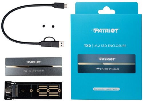 Patriot TXD M.2 PCIe SSD Enclosure; Externí box pro připojení M.2 NVMe disku k vašemu PC, notebooku, TV či jinému multimediálnímu zařízení pomocí konektoru USB-C , přes který je zároveň i napájen.