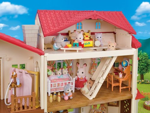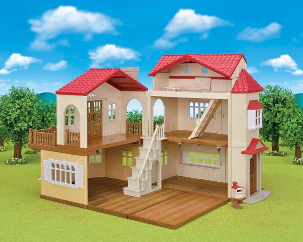 Patrový dům se světly má červenou střechu a béžové stěny, které tvoří nádherný domov rodinky Čokoládových králíčků. Pokoje jsou vybaveny 3 světly, z nichž každé lze zapnout. Dům může být otevřen pro hraní 90 stupňů, 180 stupňů i jakýkoli jiný úhel mezi nimi. Uzavření domu vytváří vzhled nádherného domova, bez ohledu na to, z jakého úhlu se na něj podíváte, a světlo se rozlévá skrz okna. Místnost druhého patra na levé straně a střecha na pravé straně jsou odnímatelné. Umístění tohoto pokoje na střechu nebo umístění střechy na terasu vytváří velký třípodlažní dům, kde si můžete hrát. Spojte dům se základním patrovým domečkem a vytvořte velký, třípatrový dům ( základní patrový dům se prodává samostatně). Umístění nábytku a figurek zvířátek do těchto místností umožňuje ještě zábavnější hru (figurky a nábytek se prodává samostatně).Věk: 3+ Dům neobsahuje figurky a nábytek.