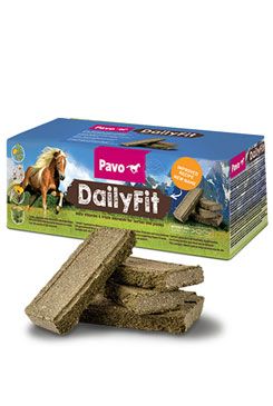 Pavo DailyFit je velmi chutná vitaminová oplatka, která obsahuje denní dávku vitamínů a stopových prvků. Je vhodná pro všechny typy koní a poníků. Je vhodná pro všechny koně a poníky, protože obsahuje pouze živiny, které váš kůň potřebuje, bez další energie a kalorií, jako v koncentrovaném krmivu. Pavo DailyFit neobsahuje obiloviny a proto má nízkou hladinu cukru a škrobu. Kromě toho jsou oplatky obohaceny o prebiotika na podporu střevní mikroflóry. Dále obsahují různé květiny a byliny: květenství, pampeliška, měsíček a kopřiva podporující imunitní systém vašeho koně.