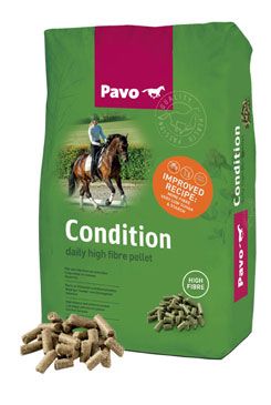 Pavo Condition byl vylepšen! Společnost Pavo neustále vyvíjí nové produkty a inovuje stávající. Na základě průzkumu mezi uživatel Pavo Condition, jsme upravili složení našich nejprodávanějších granulí. Vylepšili, jsme složení, přidali více vlákniny a snížili obsah cukru a škrobu. Nový Condition obsahuje všechny vitamíny a minerální látky pro potřeby zdravého koně. Pavo Condition je bez ovsa.