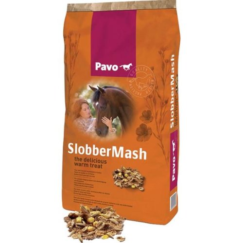 Chcete vašemu koni poskytnou opravdový požitek? Dejte mu Pavo Slobber Mash 2 – 3x týdně: extrémně chutná změna jeho krmné dávky. Odměrku Pavo Slobber Mash přelijte horkou vodou a přidejte ke krmné dávce. Díky vysoké kvalitě čistého lněného semene a dobře vybalancovaného množství vitaminů bude mít váš kůň nádhernou lesklou srst. Pavo Slobber Mash je lehce stravitelné a extrémně vhodné pro koně, kteří mají problémy se zuby. Zajišťuje rychlé zotavení po namáhavé zátěži a zlepšuje fyzickou kondici po nemoci. Pavo Slobber Mash podporuje dobré trávení, čímž snižuje možnost kolik.