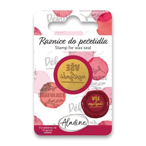 Kovové pečetidlo Aladine s textem Vše nejlepší je určené k výrobě voskových pečetí,,Průměr pečetidla: 2 cm