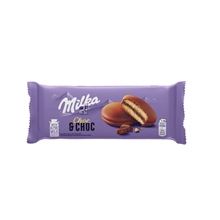 Jemné pečivo plněné kakaovou náplní s kousky mléčné čokolády z alpského mléka, celomáčené
