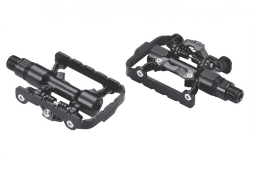 Jedna strana pedálu obsahuje nášlapný SPD systém, druhá strana je pak klasický volný pedál.