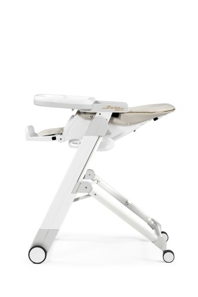 Díky 4 kolečkům a důmyslném brzdovému systému STOP&GO lze Siestu Follow Me snadno přesunout např. do jiné místnosti. Židlička se lehce rozkládá a skládá, po složení je kompaktní a stojí zcela samostatně. Výškově je nastavitelná do 9 různých poloh. Opěrku zad lze nastavit do 5 poloh a opěrku nohou do 3 poloh. Přední dvojitý pultík je polohovatelný a odnímatelný. Vespod je vybavený bezpečnostní přepážkou, která zabraňuje vyklouznutí dítěte a jeho horní část s držákem na láhev lze mýt v myčce na nádobí