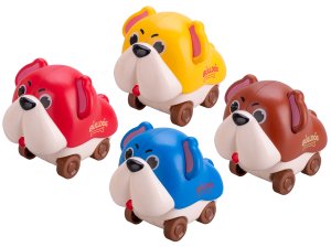 Pejsek 7,5 cm po stlačení jezdící - mix barev (modrá, žlutá, červená, hnědá)