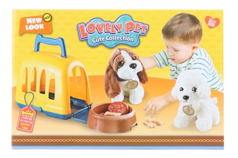 Plyšový pejsek s plastovou přepravkou a doplňky. Balení obsahuje pejska o velikosti cca 18 x 12 cm, přepravku o velikosti 20 x 21 x 13 cm, misku a krmení. Rozměry balení cca 25,5 x 17 x 14,5 cm. Věk 3+