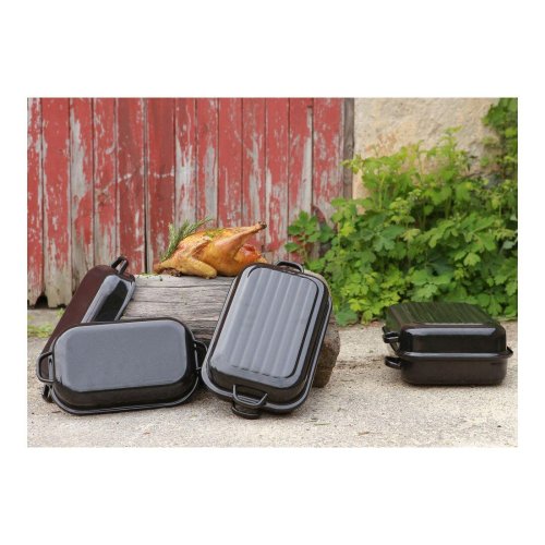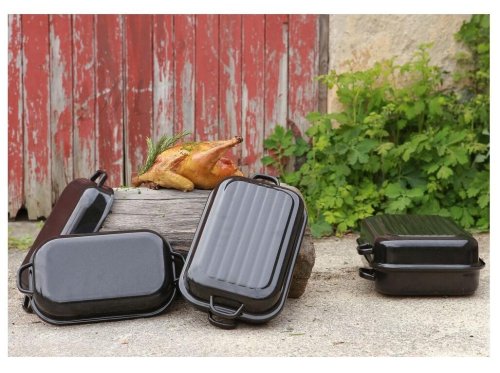 Oboustranně smaltované nádobí z ocelového plechu. Je určeno pro pečení ve všech typech trub, mimo mikrovlných. Tento tradiční smaltovaný pekáč má vnitřní rozměr 30 cm.