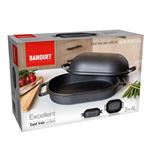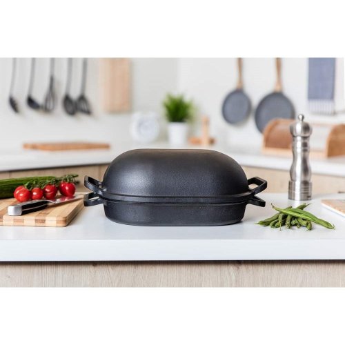 Připravte si svůj oblíbený pokrm v litinovém pekáči Banquet Excellent. Skládá se ze 2 dílů – pekáče a víka. Litina totiž po nahřátí rovnoměrně rozvádí teplo, takže se hodí nejen pro pečení v troubě. Využijete ho také pro vaření, dušení a smažení. Díky masivnímu materiálu s vynikajícími vlastnostmi připravíte oběd či večeři za kratší dobu a úsporněji.