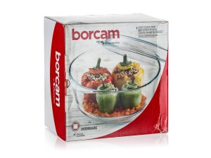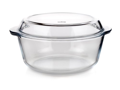 Skleněný kulatý pekáč s víkem o objemu 4,1 l (nádoba 3,1 l + víko 1 l) je vyroben z tvrdého boritokřemičitého skla, které je velmi odolné (mechanicky i teplotně -40 až 300 st.C). ýhodou je dlouhá životnost, hygienická nezávadnost a snadná údržba (lze mýt v myčce na nádobí).