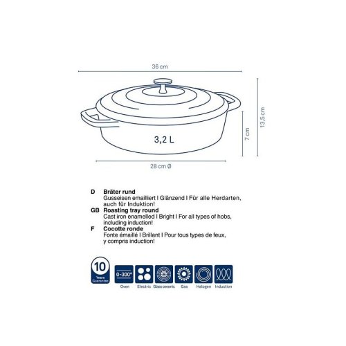 Pekáč litinový s poklicí CALIDO 28 cm šedá KL-12611
