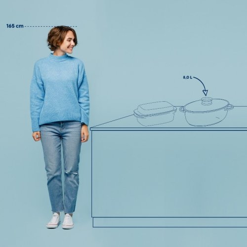Zvláštností tohoto pekáče je inovativní víko: Je vyrobeno z tepelně odolného skla, takže se můžete na jídlo kdykoli podívat, aniž byste museli víko zvedat. To ale není vše – víko lze využít i jako praktický kastrol. Takže máte dva nepostradatelné doplňky v jednom!