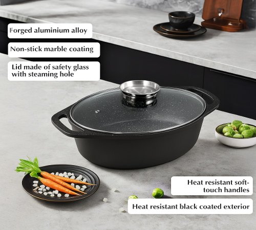 Jednou z největších výhod pekáče je, že vám ušetří spoustu času a energie. Nemusíte se trápit s vařením na plotně a dohlížením na pokrm, který se pomalu vaří. Stačí všechny suroviny vložit do pekáče a pak s ním rovnou do trouby. Kvalitní materiál, ze kterého je pekáč vyroben – mramor zajistí, že teplota bude v pekáči rozváděna rovnoměrně. Nádobí odolá vysokým teplotám a díky kvalitnímu materiálu je také snadno omyvatelný.