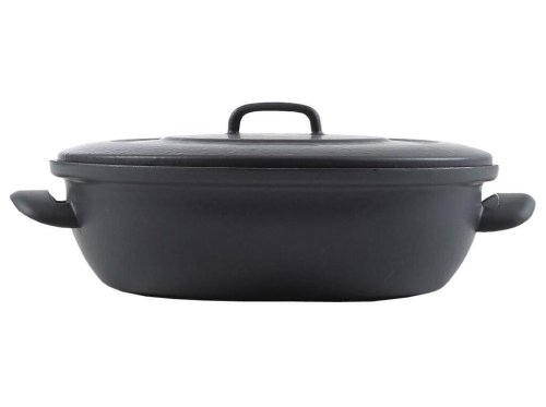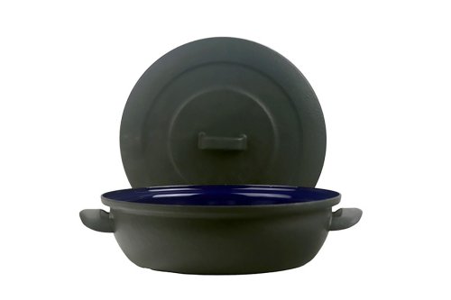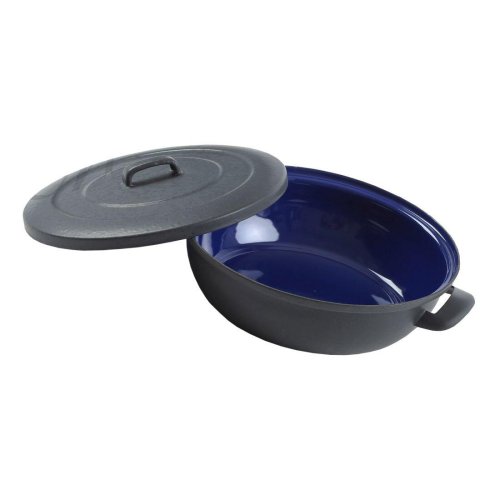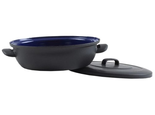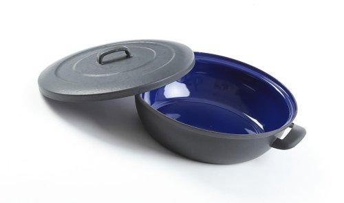 Zapékací pánev alá litina s poklicí, nádobí BSE má uvnitř speciální modrý smalt.