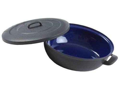 Smaltovaná zapékací mísa s poklicí BSE 28 cm má díky silnostěné nádobě vynikající teplné vlastnosti, umožňuje zapékání a servírování i objemnější pokrmů a je prakticky nezničitelná. Uvnitř je nanesen typický, tmavě modrý smalt a vně výrobku je, pro toto nádobí, charakteristická plasticita. Nádobí BSE je určené pro ty, kdo upřednostňují tradici a dlouholetou životnost nádobí.
