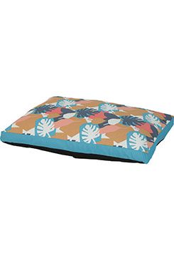 Pohodlný polštář se snímatelným potahem pro psy s tropickým vzorem.