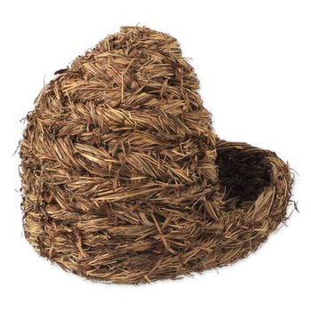 Proutěný pelíšek ve tvaru bačkory vyrobený z přírodních meteriálu.