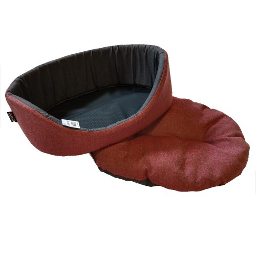 Látkový pelíšek pro psy ve tvaru oválu s vyjímatelným polštářkem.
